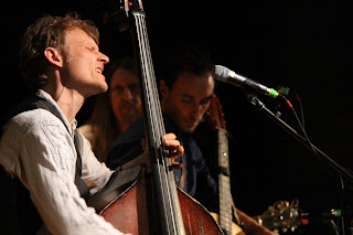 The pictures below will show Chris Wood playing the upright bass and harmonica, Oliver Wood playing acoustic and electric guitar, and Jano Rix playing drums, "shuitar", among other instruments.